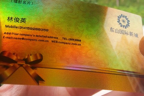 0.38mm厚度高档珠光镭射PVC名片,表面采用激光镭射效果